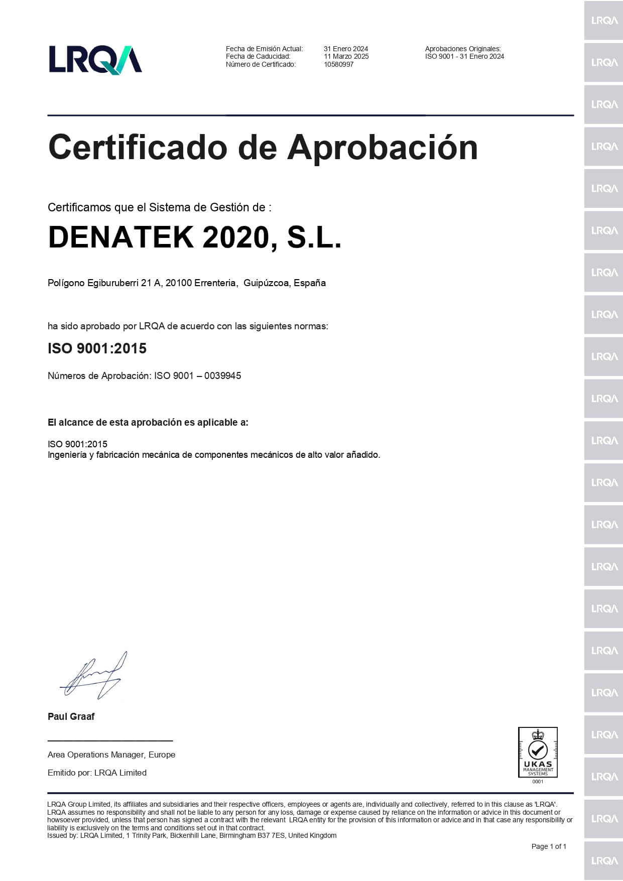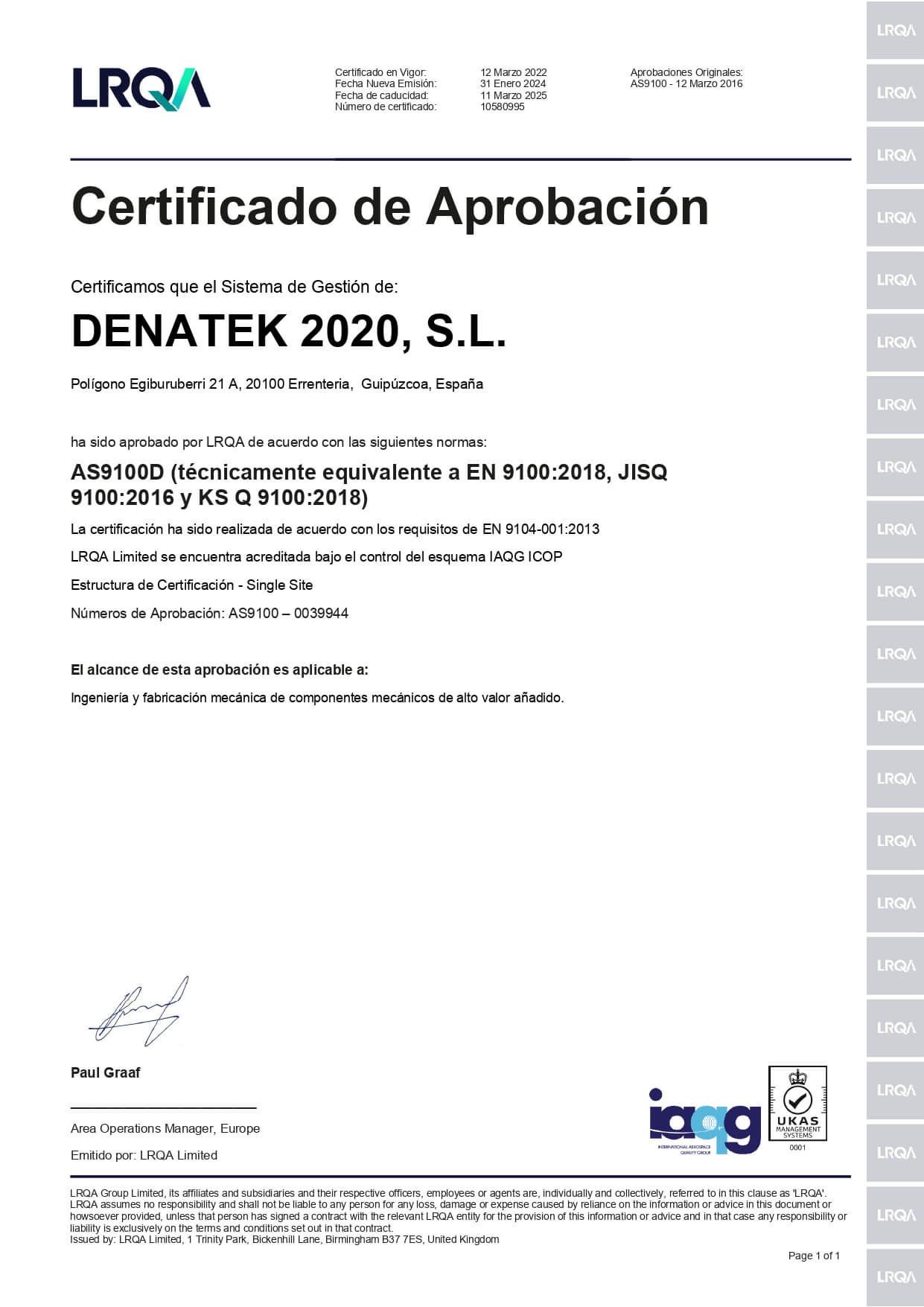Nuestros Sistema de Gestión de Calidad ha sido aprobado por Lloyd´s Register Quality Assurance de acuerdo con las normas de gestión de calidad EN 9100 e ISO 9001: